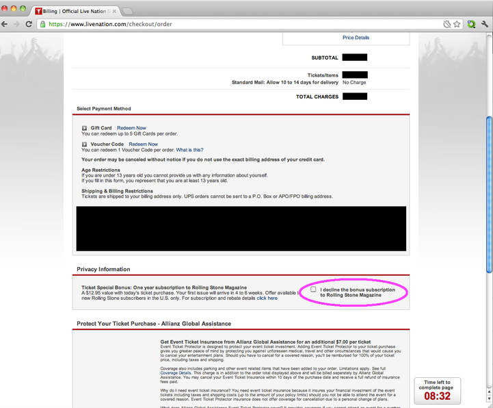 You attempt to purchase something, but somewhere in the purchasing journey the site sneaks an additional item into your basket, often through the use of an opt-out radio button or checkbox on a prior page.
